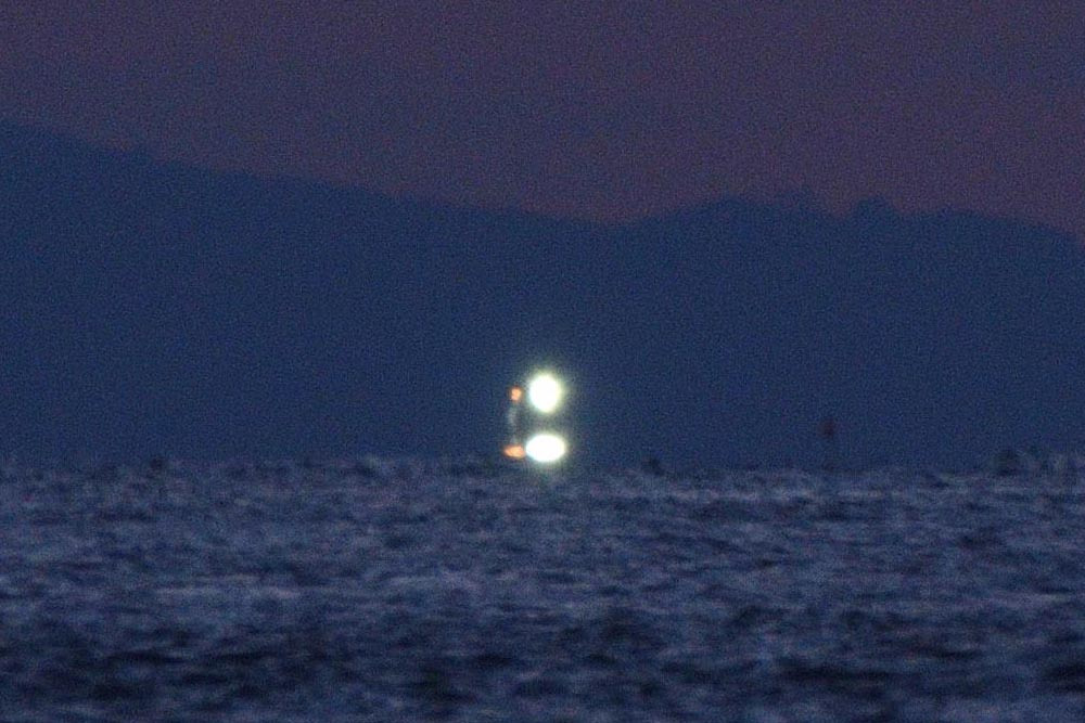 De jour comme de nuit, la seule chose qui compte est le gradient de température. L'image 1.1 montre une remarquable ligne de symétrie pour les lumières au bord de l'océan dans la ville espagnole de Hondarribia, à une distance de 21 km. La deuxième image concerne le Mont Sollube situé vers Bilbao à une centaine de kilomètres ; la lumière forte est un bateau en avant-plan. Et la troisième est un bateau dont les projecteurs indiquent l'existence de l'image inférieure, ce qui permet de noter, grâce à l'étalement des lumières, que l'image inférieure est comprimée verticalement. Les trois images ont été réalisées en juillet 2022 depuis Biarritz.