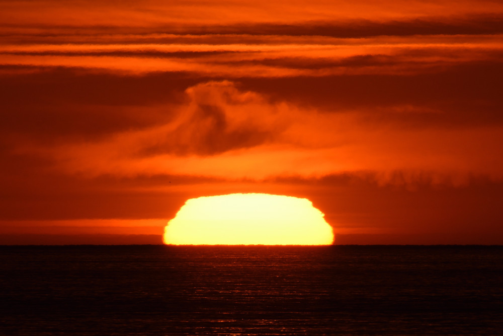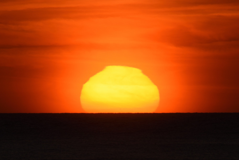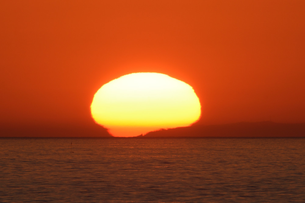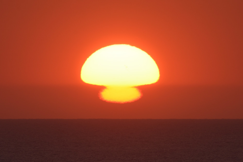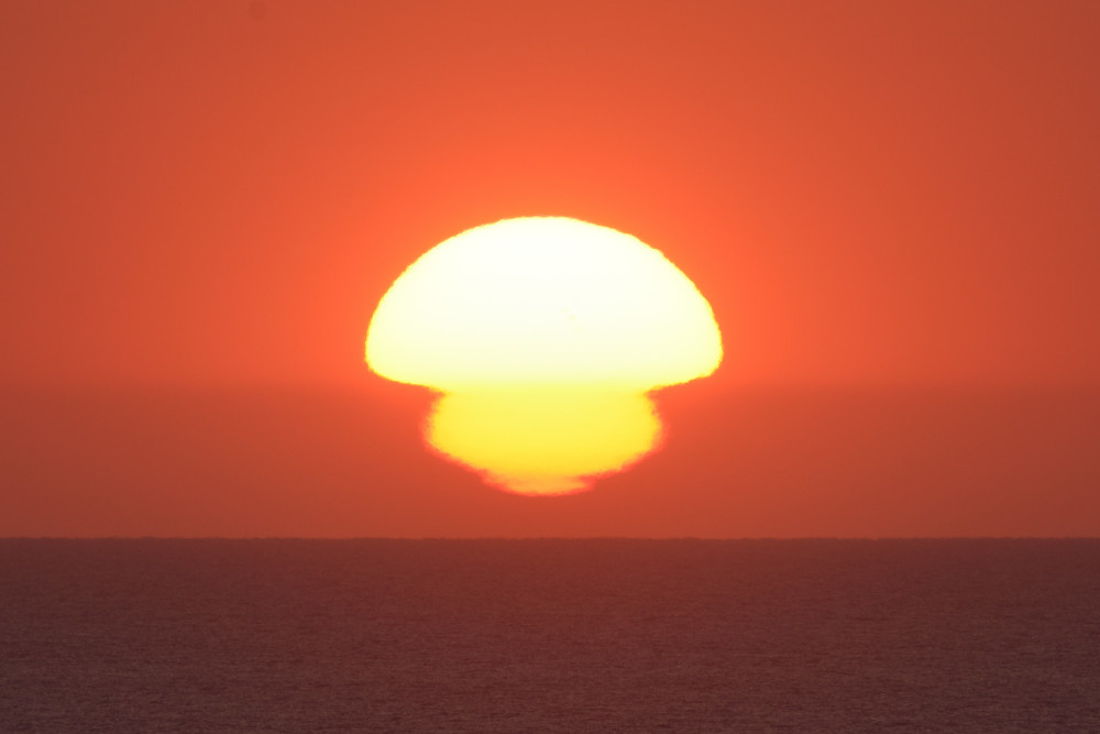 En mars 2022 à Biarritz, alors que le Soleil s'abaisse sur l'horizon, une image inversée et une image droite sont apparues sous lui (composition d'images 1.5). Le point d'observation est situé au bord de l'Océan Atlantique à une altitude d'environ 2 m. La visibilité de la séquence est un peu perturbée par la présence de bandes nuageuses mais l'évolution montre bien de haut en bas :