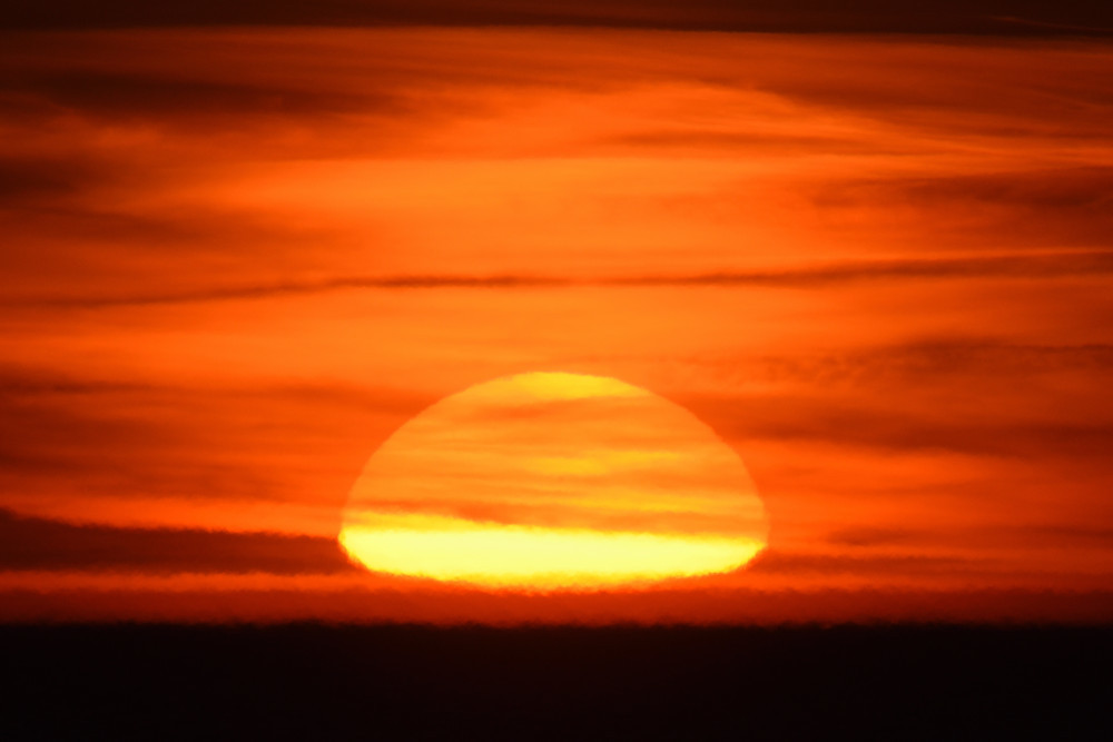 Le même phénomène d'un Soleil rectiligne a été observé lors de deux levers du Soleil consécutifs en juin 2022 dans l'Aude et les Pyrénées-Orientales (observations n° 2 et 3 ci-dessus) avec des images équivalentes inversées chronologiquement (d'une part 6.2, 2.2 et 3.2, et d'autre part 6.3, 2.1 et 3.1), ainsi qu'en mai 2025 dans les Pyrénées-Atlantiques lors d'un événement exceptionnel dont le compte-rendu est donné ci-dessous dans l'observation n° 11.