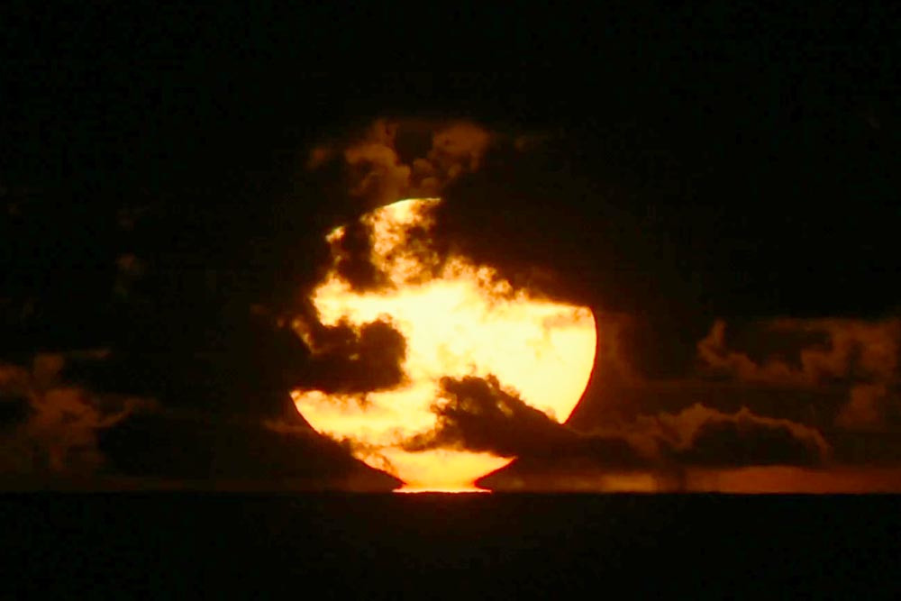 Les images 2.1 à 2.4 ci-dessous sont extraites de la vidéo précédente à des intervalles de 10 secondes. Dans l'image 2.4, le nuage devant le Soleil est vu en deux exemplaires avec une image inférieure inversée.
