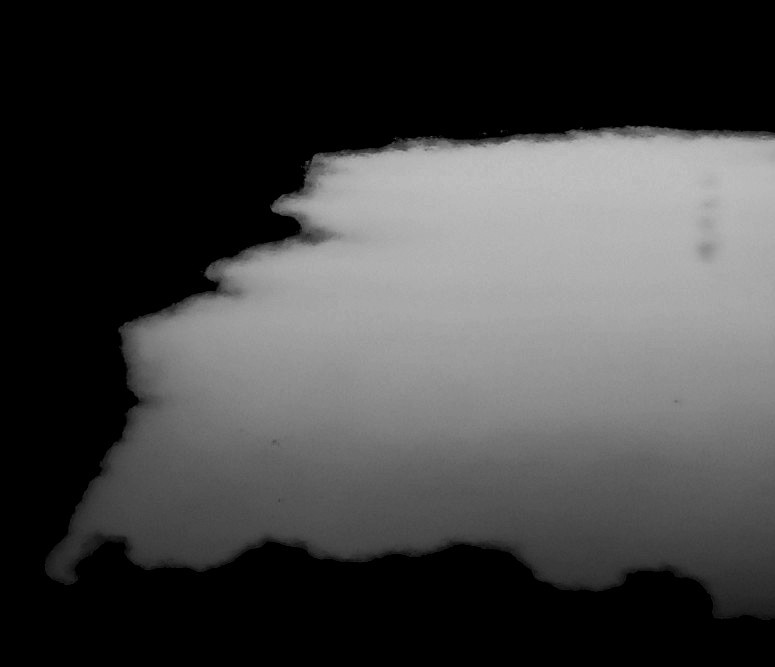 Enfin, la séquence 4.4 correspond au passage de la tache par un niveau atmosphérique qui provoque le mirage inférieur de l'image 4.5. Dans chacune des quatre images, la bande noire inférieure est l'horizon marin et la ligne de symétrie du mirage inférieur est située un peu au-dessus. Le Soleil étant plus bas que dans 4.2 et 4.3, la netteté de la tache est de moindre qualité mais il apparaît clairement que, de haut en bas, la tache se dédouble en une image supérieure et une image inférieure. La tache s'allonge dans la deuxième image (en partant du haut), commence à se séparer dans la troisième pour, dans la dernière image, en bas, se montrer en deux parties nettement distinctes. Le temps écoulé de la première à la quatrième étape est de 4.5 secondes.