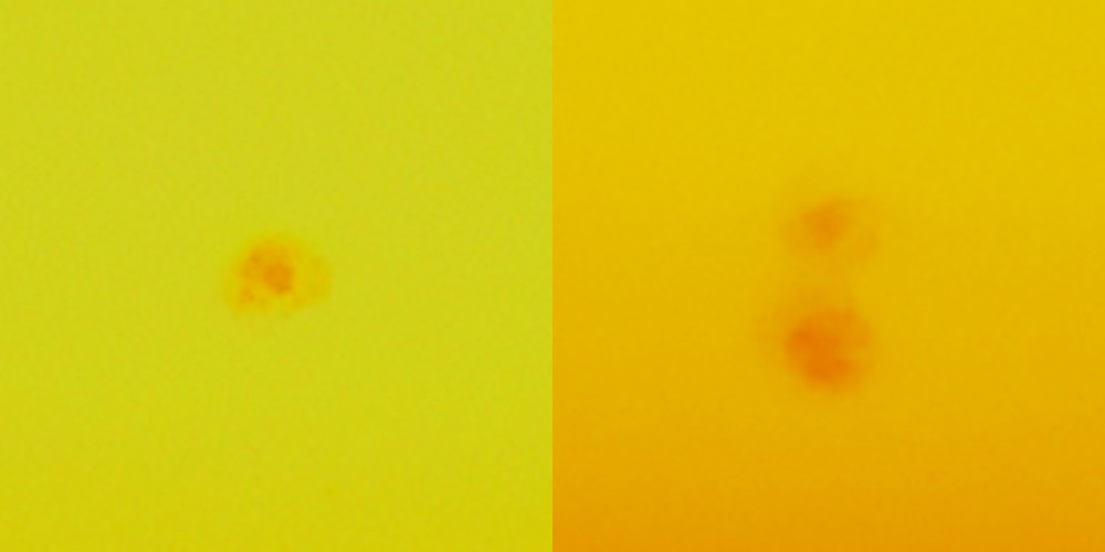 2. Deux mirages d'une tache solaire avec trois images (Pyrénées-Atlantiques, mai 2023)