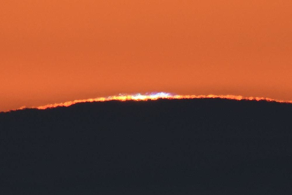 Le rayon bleu est plus rare que le vert et il consiste généralement en quelques lueurs bleues aux côtés du liseré vert sur le bord supérieur du Soleil (images 2.1 à 2.5).